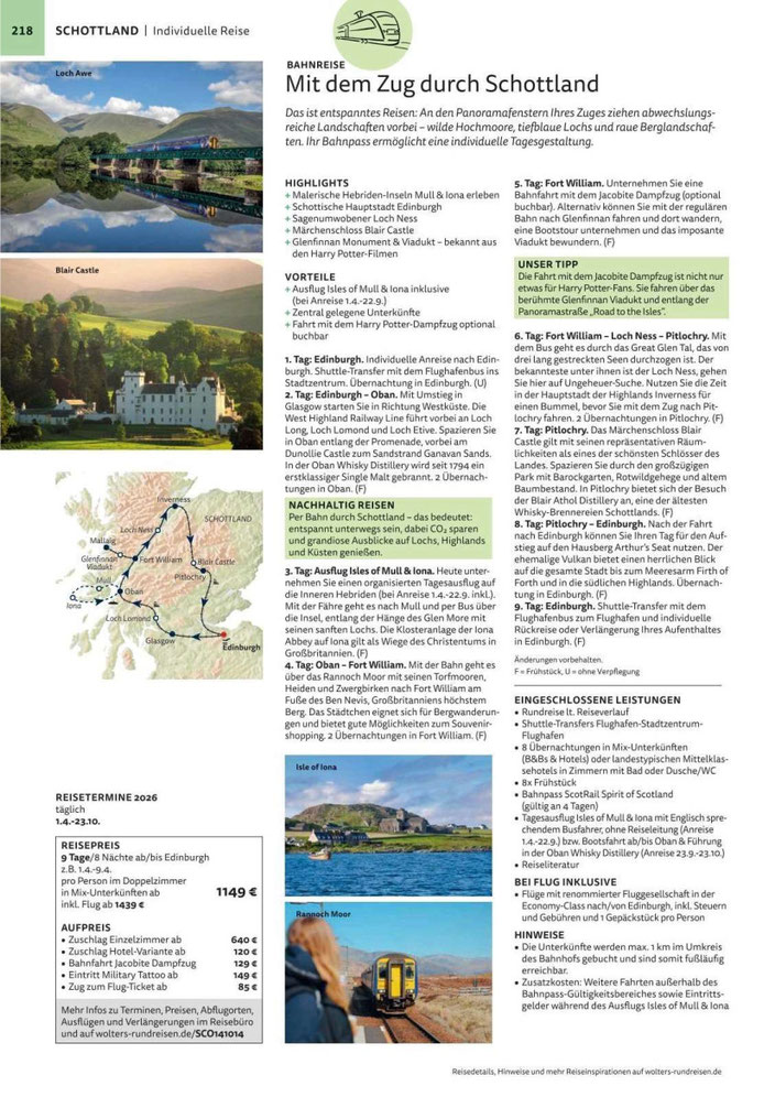 Wir buchen Bahntickets und Bahnreisen in Schottland.