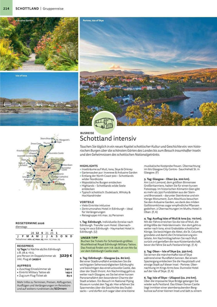 Wir bieten vielfältige Busreisen in Schottland an. Tourbeginn ist meist in Edinburgh.